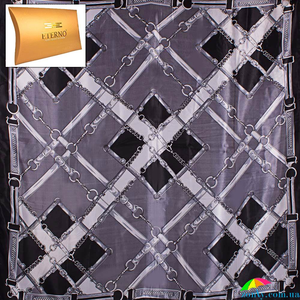 Внимание! В зависимости от настроек монитора оттенок изделия может отличаться от действительности. Пожалуйста, сделайте проверку цвета на нескольких компьютерах или уточните эту информацию у наших менеджеров. Края изделия обработаны машинной строчкой. Материал: атлас. Цвет: черный, серый. Тип рисунка: абстракция. Размеры: 86 на 90 см. Платок упакован в фирменную картонную коробку с логотипом ТМ ETERNO. Страна происхождения ТМ ETERNO - Украина, страна-производитель - Китай.