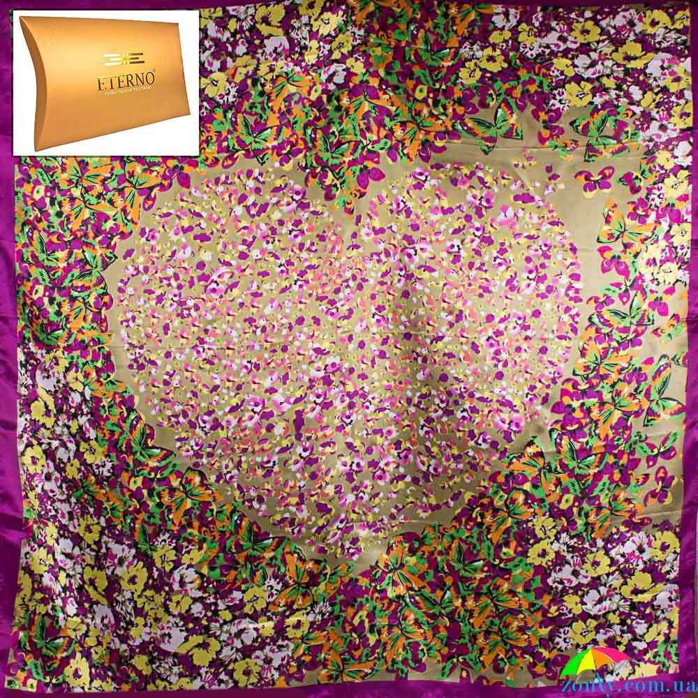 Символ сердечка, каким мы его знаем в наши дни, оказывается, использовали точно в таком виде еще древние греки и римляне. И значил он то же самое, что и сегодня: любовь. Представленный атласный платок от Eterno очень красив и имеет свое особенное значение. Сердце, составленное из ярких тропических бабочек и цветов означает большое, радостное, легкое и яркое чувство. Оригинальное, радующее глаз сочетание мягкого хаки, фиолетового, зеленого, желтого делает платок очень красивым, особенным и приятным украшением. На гладком, блестящем атласа рисунок выглядит еще более впечатляюще. Такой красивый, качественный аксессуар со значением может стать прекрасным подарком девушке и признанием в любви, в День Святого Валентина, например, и не только.