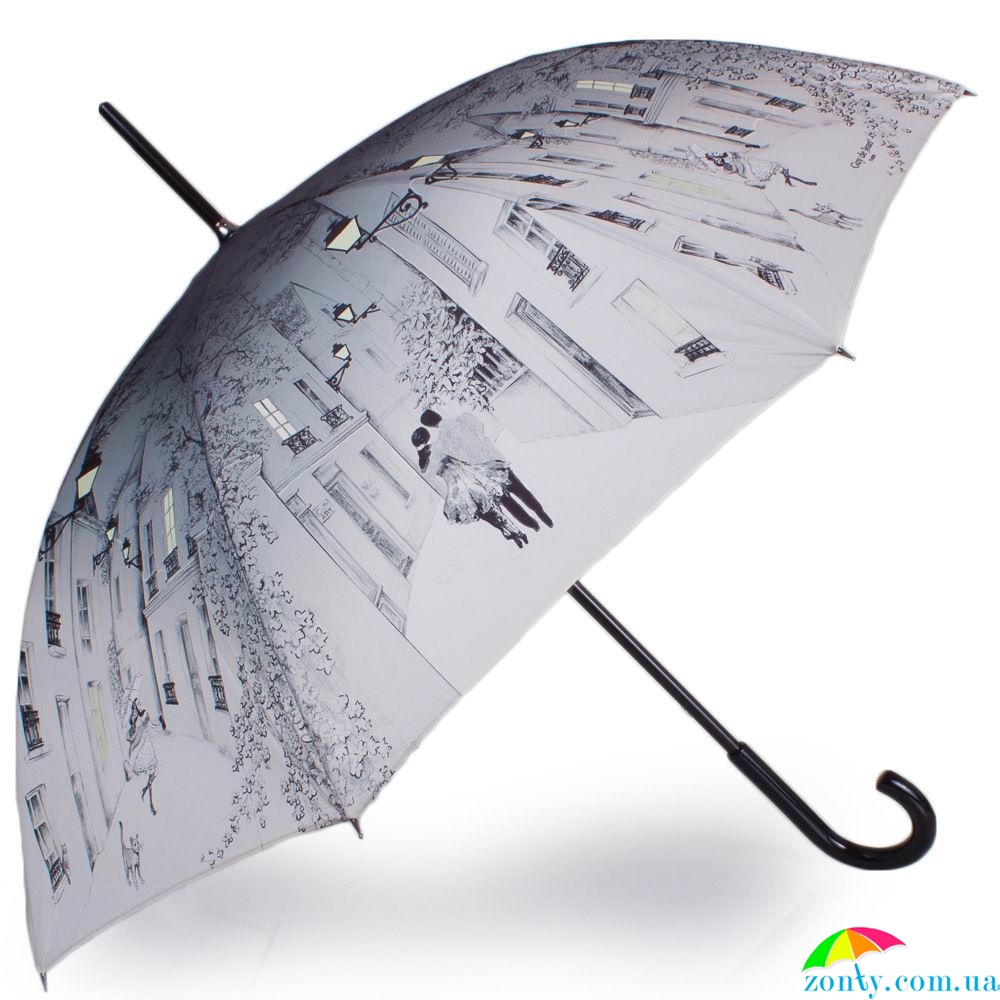 Дымчато-серый, с бежевым подтоном, с градиентной сменой фона, тонко прорисованными графическими городскими пейзажами, в центре которых - влюбленная парочка и романтично настроенная девчушка, - этот стильный французский зонтик может стать знаковым приобретением для Вашего гардероба. Ведь такой аксессуар просто нуждается в соответвующем наряде владелицы, он побуждает создавать безукоризненные образы и двигаться элегантно. Трость знаменитого бренда Guy de Jean идеален во всем - у него прочный каркас с механическим управлением (рассчитан на большой срок эксплуатации) и оптимальный вес, не маленький купол, эргономичная ручка-крюк. Вы можете купить его в нашем магазине по самой удобной цене.