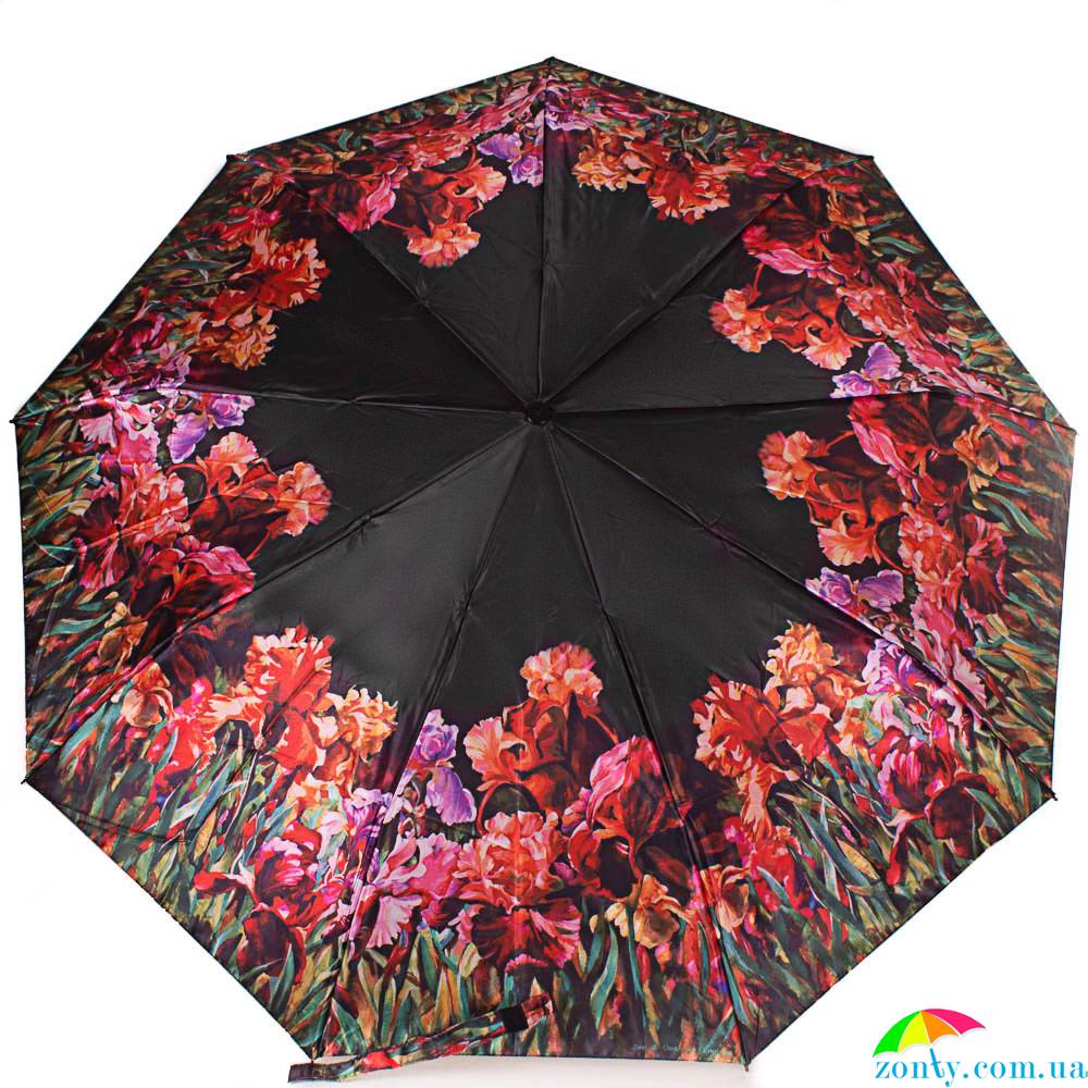 Эффектное цветовое решение купола этого зонта поистине впечатляет. На черном фоне по внешнему краю выросли фантастические пурпурные, красные, оранжевые ирисы. Такая оригинальная вещь не оставит Вас незамеченной. Он образует прекрасный ансамбль как с темной, так и яркого цвета одеждой и аксессуарами, став основным в формировании Вашего образа. Этот зонт придаст Вам яркость, оригинальность, улучшит настроение, привнесет ощущение праздника и предвкушения приятных событий. Дождь не сможет Вас огорчить, ведь такой аксессуар не только красив, но и функционален: он надежно защитит от непогоды в любое время, ведь благодаря небольшим размерам в сложенном виде спрячется в Вашей сумке до нужного времени.