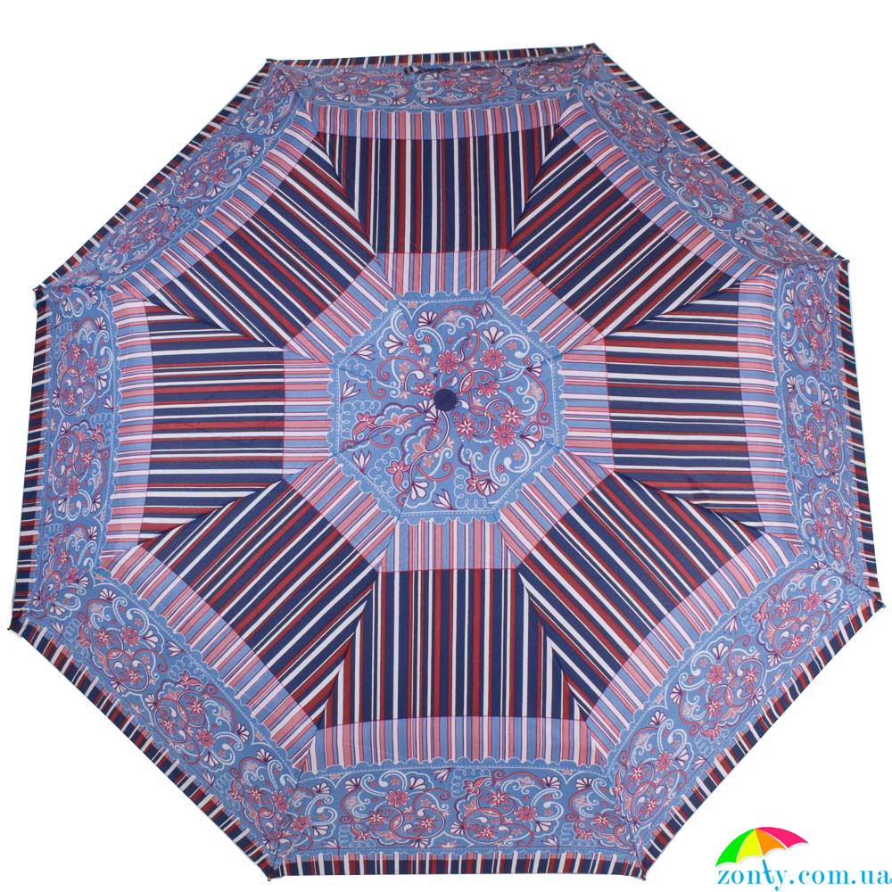 На куполе этого зонта дизайнеры торговой марки АЭРТОН сумели вместить целый калейдоскоп различных мотивов. В одной композиции нашли место и геометрически строгие полосы, и сложный растительный орнамент, напоминающий восточные и средневековые мотивы. При этом каждый элемент нашел логичное место, которое позволяет ему взаимодействовать с другими, дополняя и украшая общий рисунок. Не менее оригинально решена цветовая гамма изделия, построенная на добавлении звучного бордового к синему, голубому и белому. Своеобразно выполнена и конструктивная часть изделия, ведь разработчики использовали механический механизм как самый надежный, при этом облегчив аксессуар и сделав его компактным. А купить такой оригинальный зонтик по приятной цене можно в нашем магазине.
